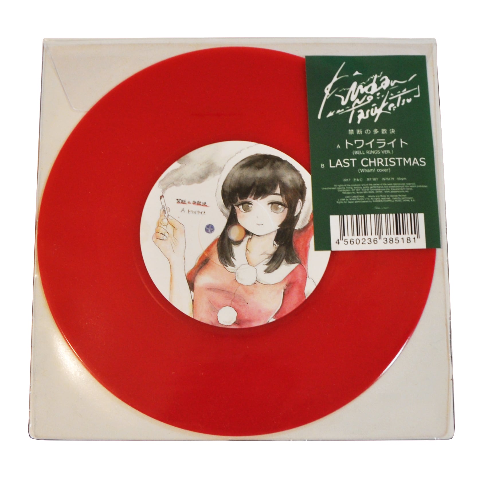禁断の多数決によるウィンター・シングルの限定盤。A面「トワイライト (Bell Rings ver.)」は、デビュー曲「透明感」を彷彿とさせるドリーミーなシューゲイズ・ポップ・サウンドに、バレアリックなシンセの旋律がオーロラのように舞い降りる、切なくエモーショナルなウィンター・ソングです。B面は説明不要、ワム(Wham!)によるクリスマスソングのカバー曲。曲調自体はオリジナルをトレースしながらも、ヴィンテージなコズミック・シンセ風のトラックに、ほげちゃんのソウルフルなメイン・ボーカルと、加奈子の透明感あるコーラスがフィーチャーされた、異色のガールズ・テクノ・ポップ・アレンジに仕上がりました。クリスマス仕様のレッドカラー・ヴァイナルとなります。